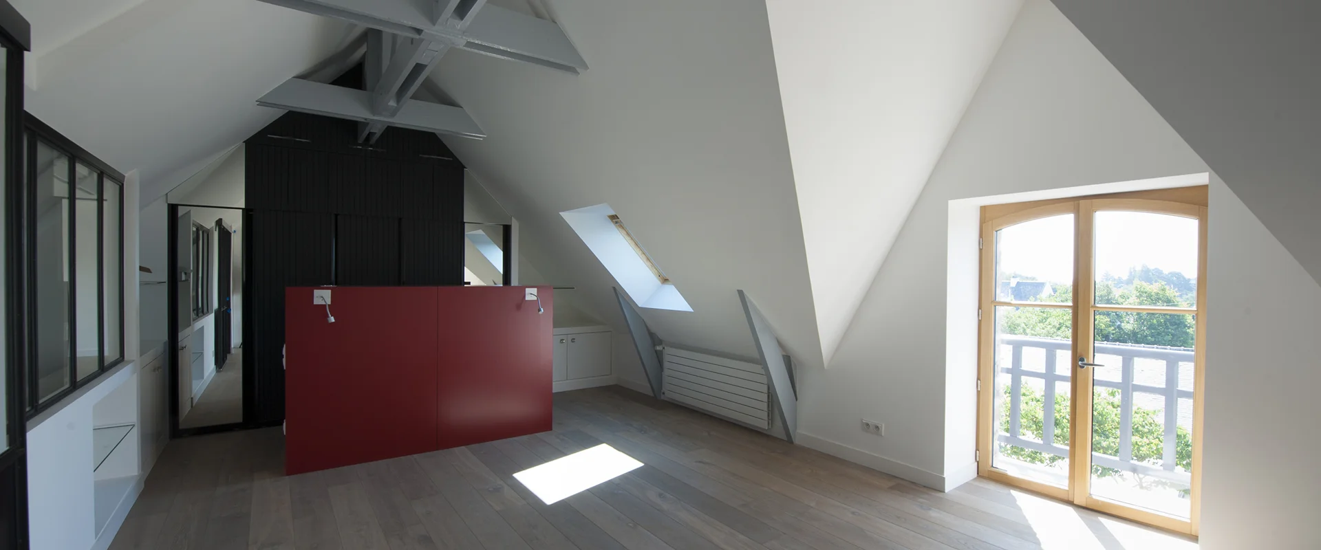 Nous étudions la structure de votre maison pour créer un espace lumineux et chaleureux sous les toits. Votre nouveau bureau, suite parentale, loft d’artiste…